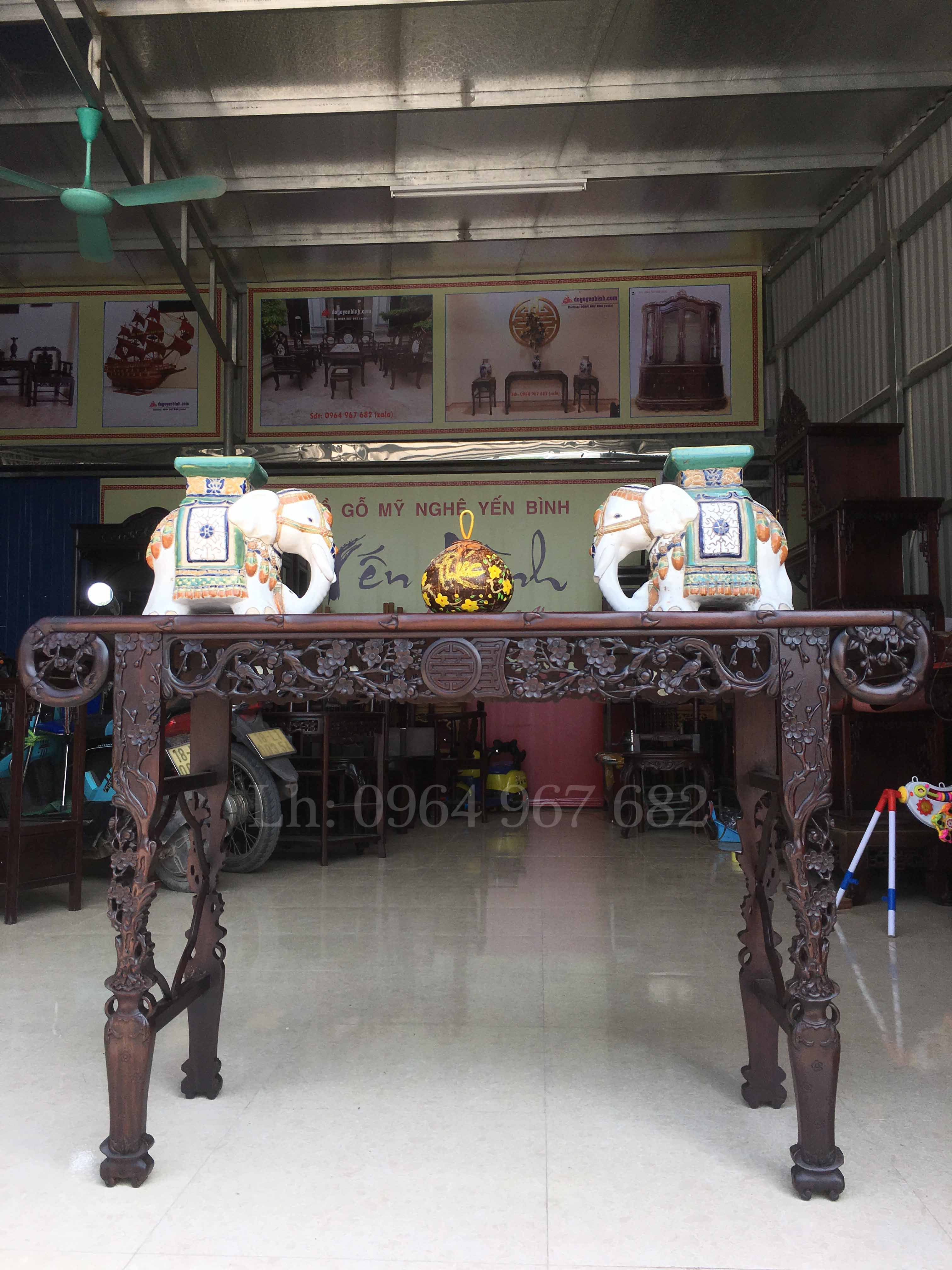 Bàn trung đường trạm mai thọ được trạm đục cả 2 mặt trước và sau…Chân được uốn cong rất nghệ thuật và khó làm đòi hỏi tay nghề cao.