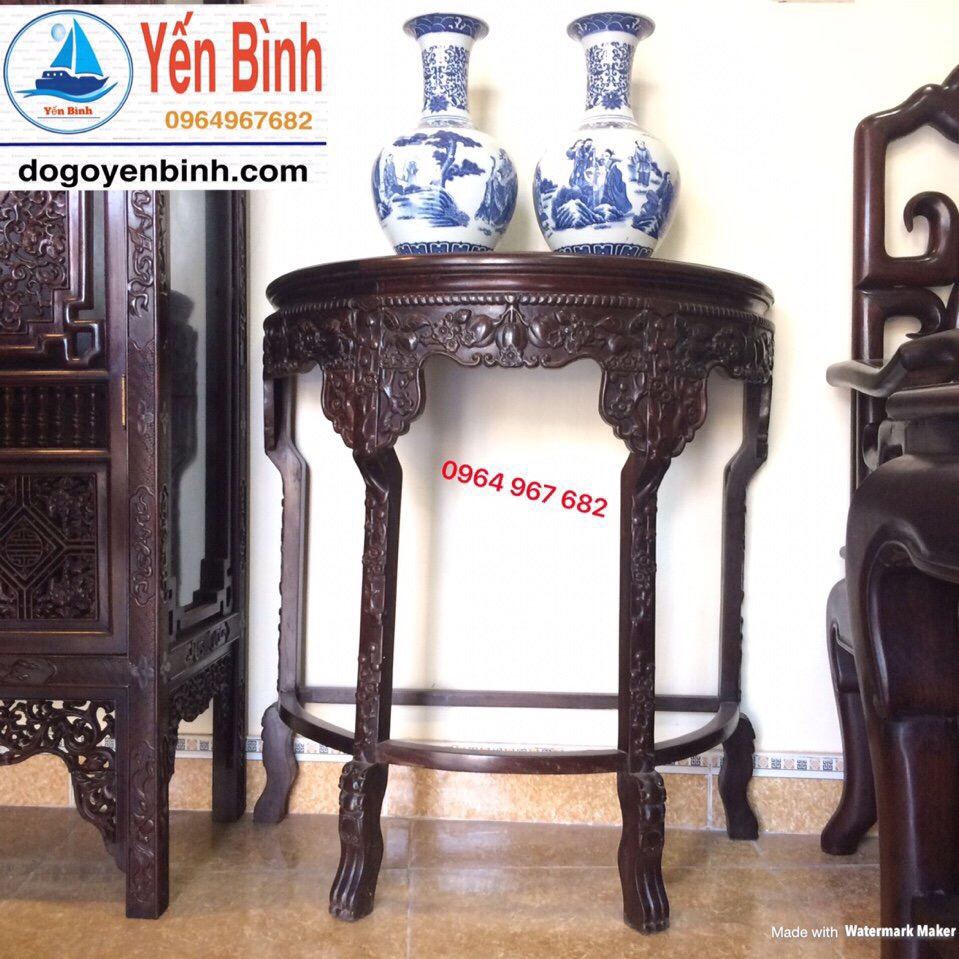 Đồ Gỗ Yến Bình xin giao lưu với các bác chiếc bàn bán nguyệt trạm hoa văn đẹp lạ mắt . Sản phẩm được chạm hoa mai với ý nghĩa : Hoa mai 5 cánh tượng trưng cho 5 điều tốt lành bao gồm hạnh phúc, may mắn, trường thọ, thành công và hòa bình.