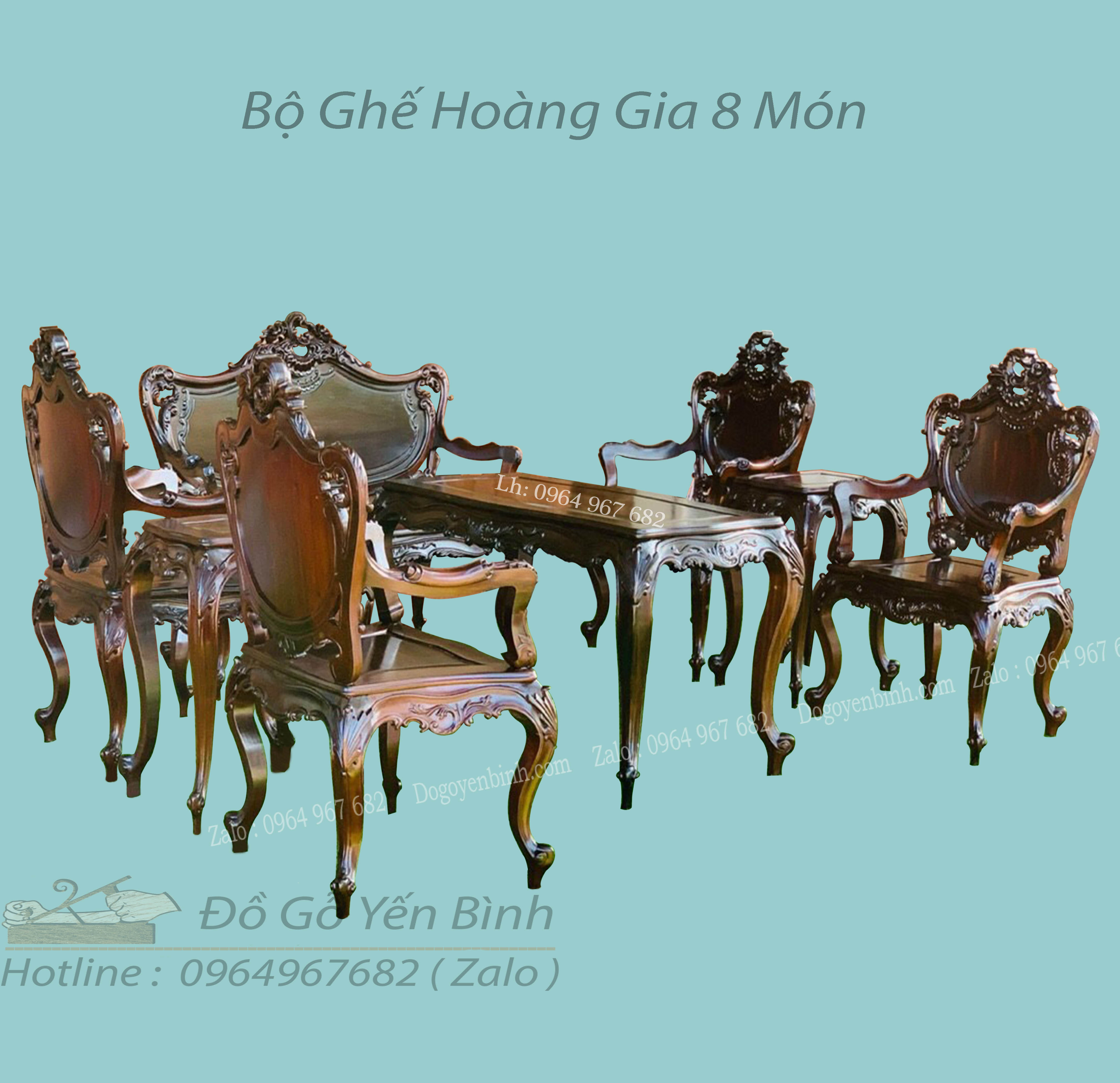 BÀN GHẾ HOÀNG GIA sang trọng được làm hoàn toàn từ chất liệu gỗ Gụ bền đẹp, kiểu dáng sang trọng và đẳng cấp với những đường cong mềm mại, đầy tính nghệ thuật, kỹ thuật chạm khắc gỗ đạt tới đỉnh cao về độ tinh xảo, cầu kỳ, kỹ lưỡng.
