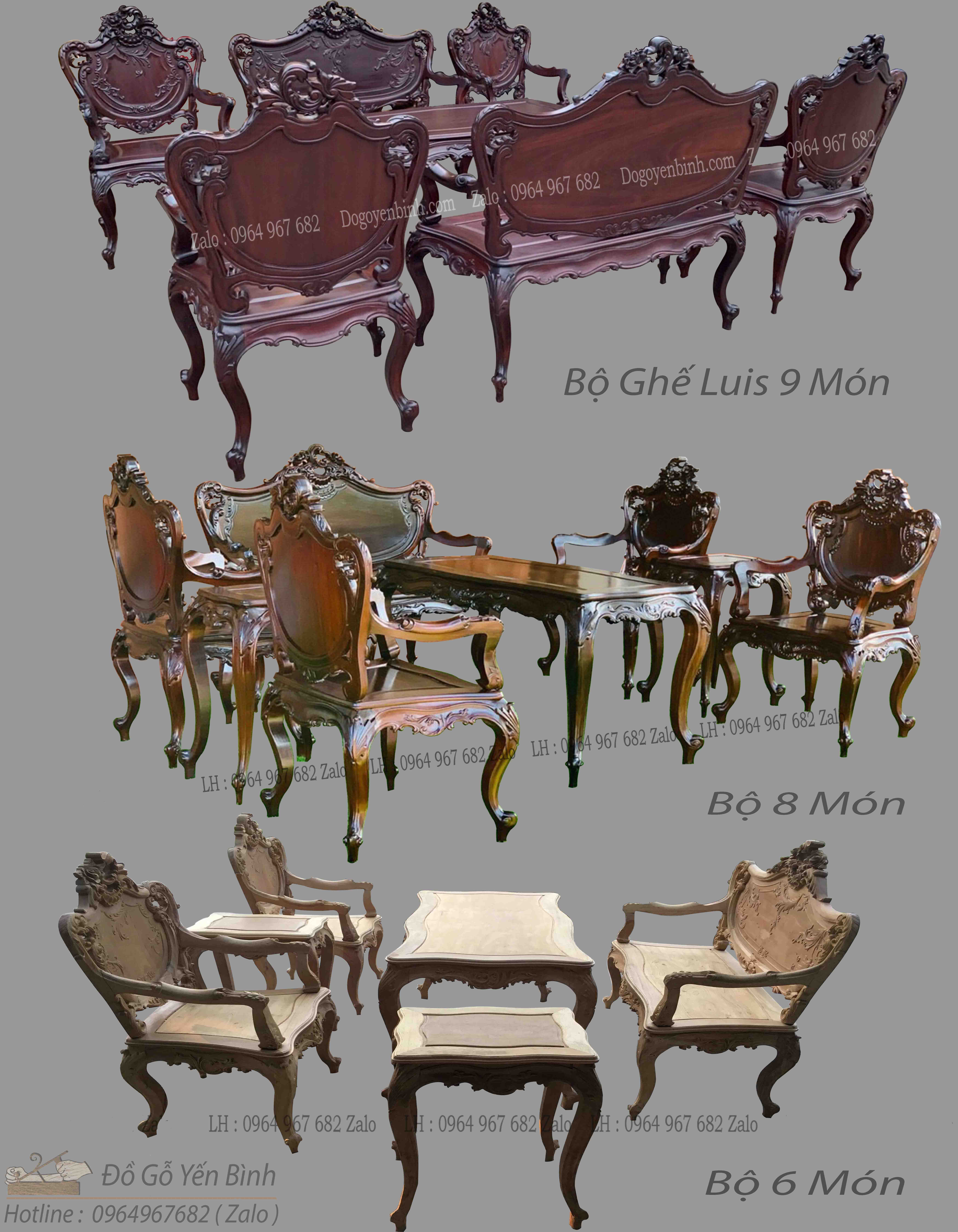 BỘ BÀN GHẾ LOIS PHÁP gồm Có 6 món 8 món và 9 món tùy vào không gian nhà bạn mà lựa chọn sao cho hợp lý.