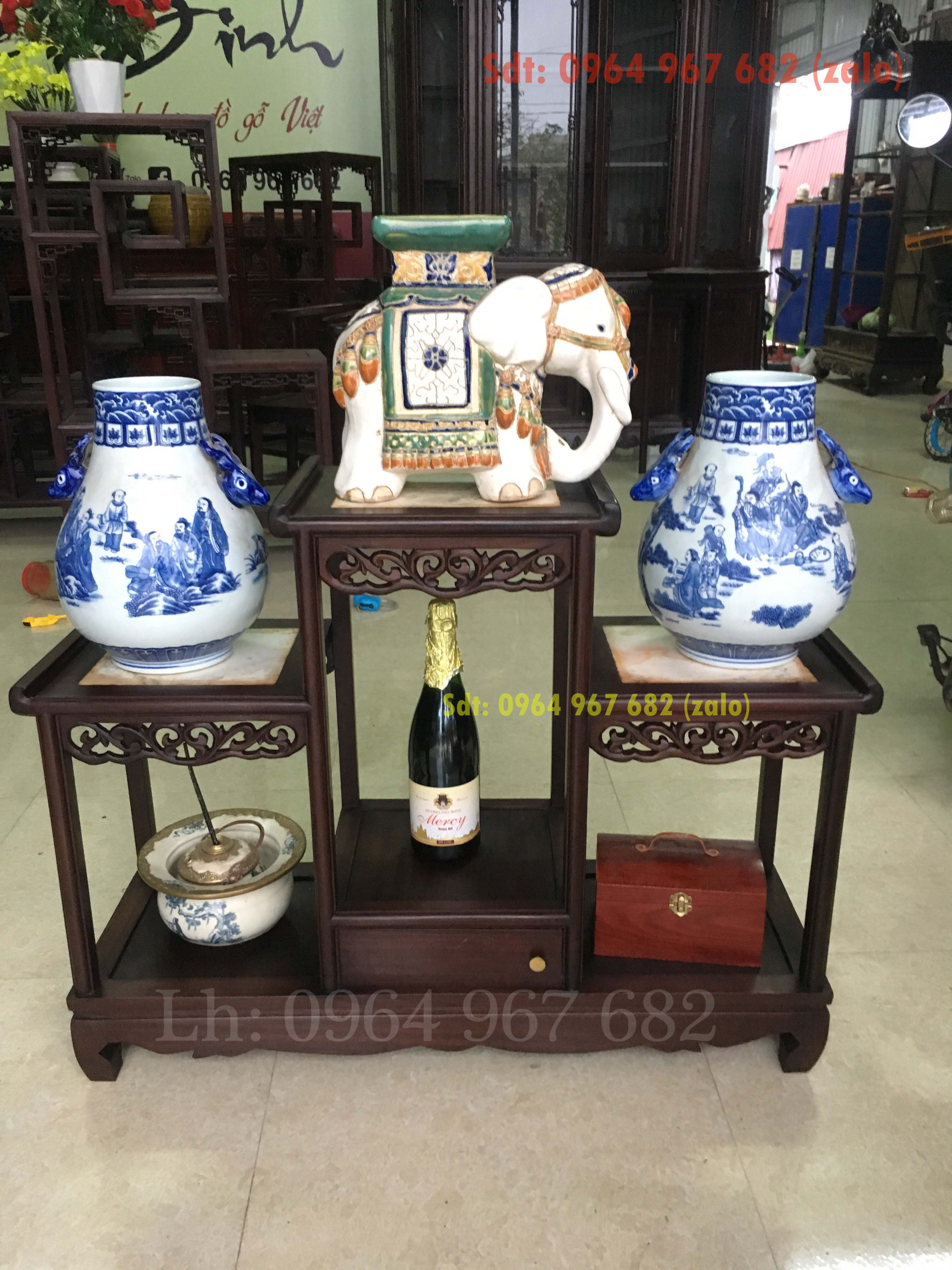 KỆ BÀY ĐỒ TAM SƠN THÙNG - KỆ TRƯNG BÀY có kt dài 88 cao 66 rộng 26 chất liệu gỗ gụ.