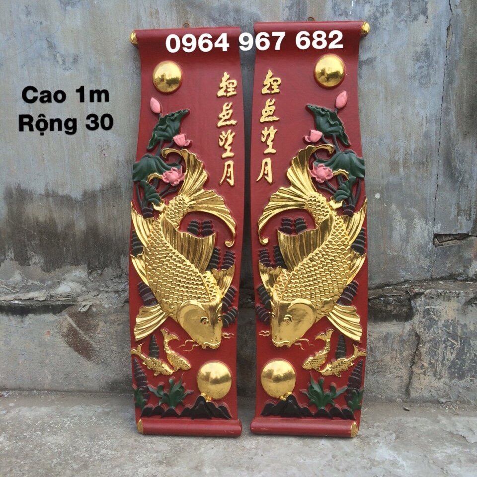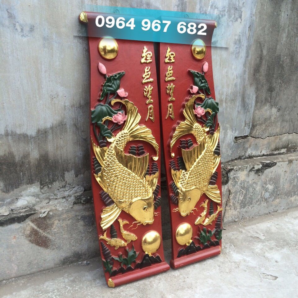 + lý ngư vọng nguyệt nên được treo theo cặp, 2 cá chép hướng vào nhau như một đôi cá chép có đực có cái, mạnh khỏe và sung mãn