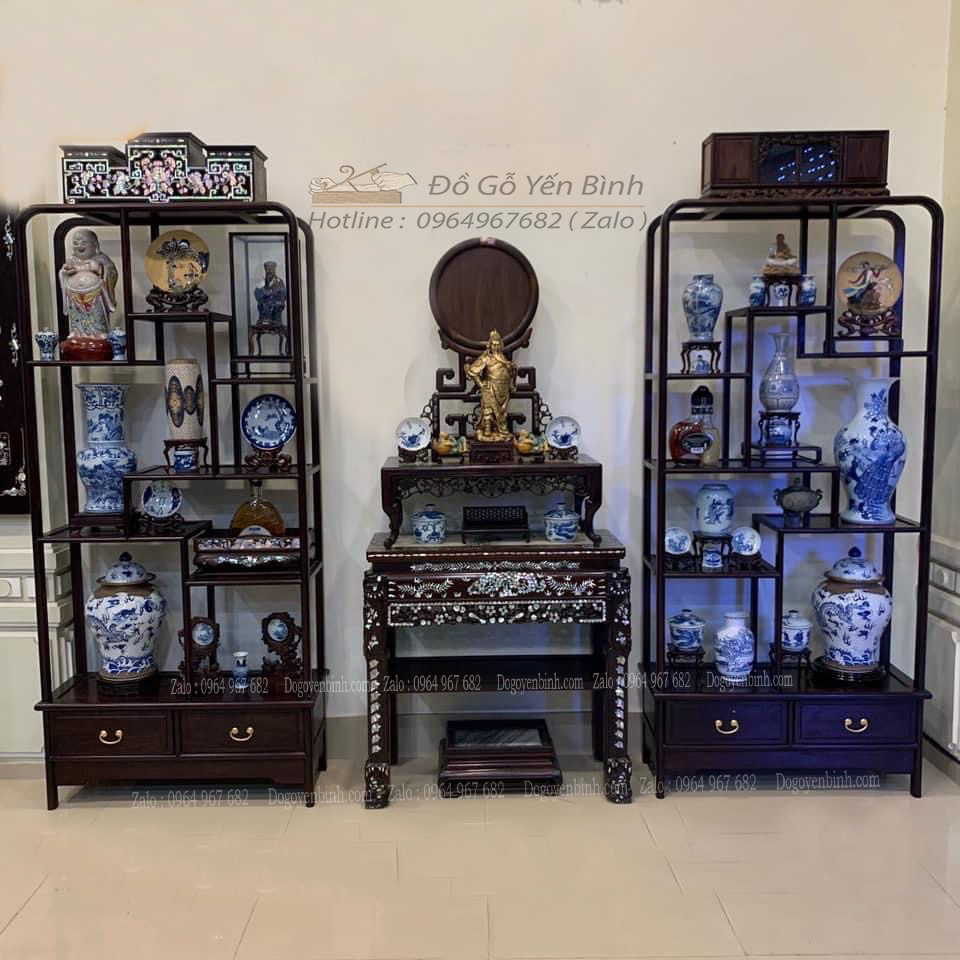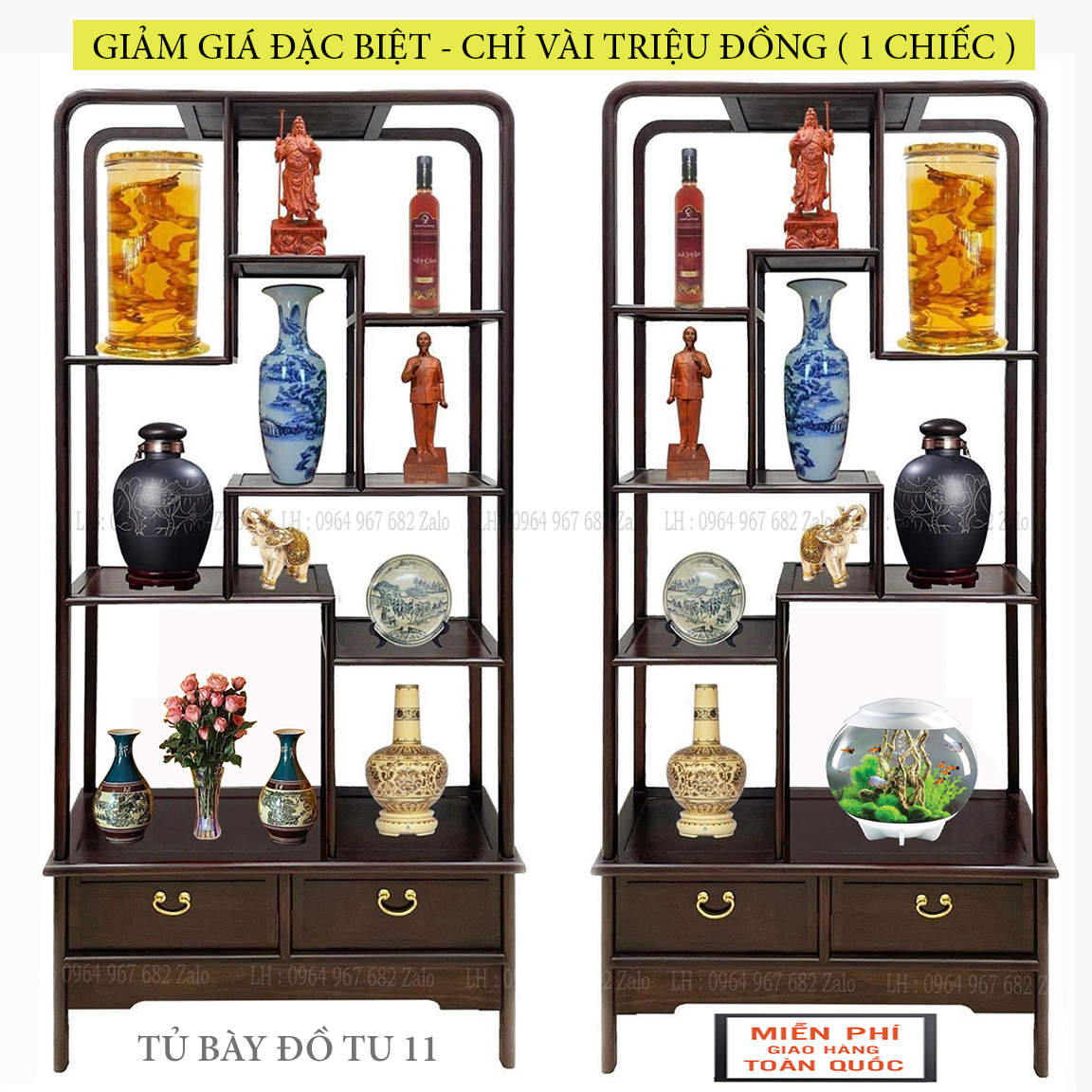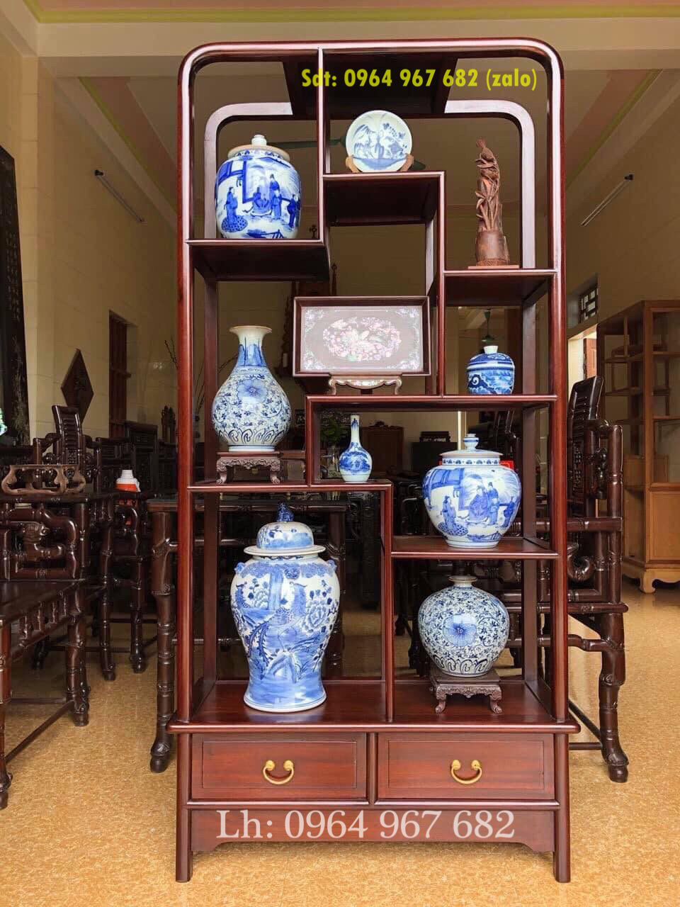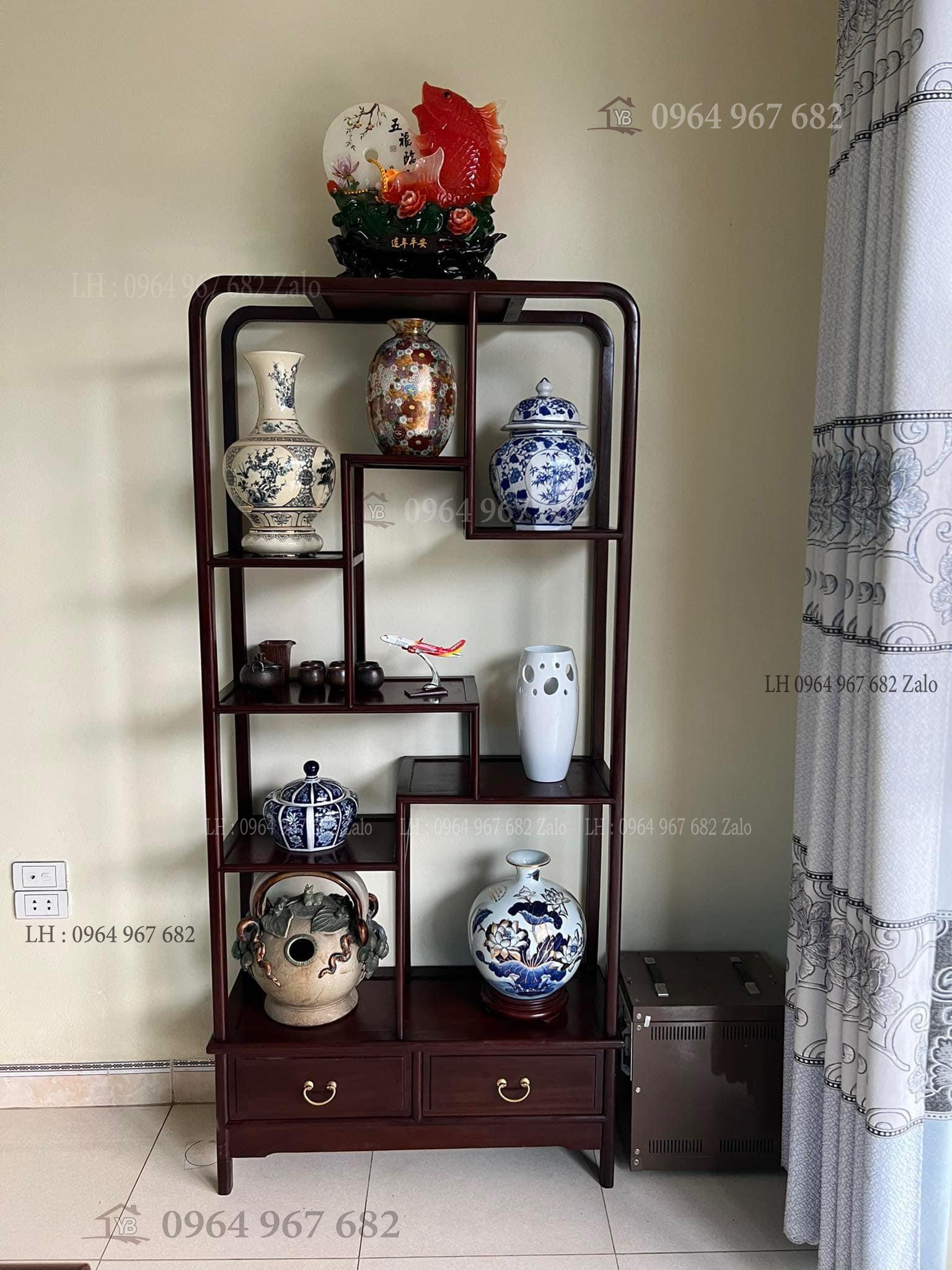 Tủ trưng rượu bày đồ gốm sứ - tủ bày đồ gỗ gụ ms 11