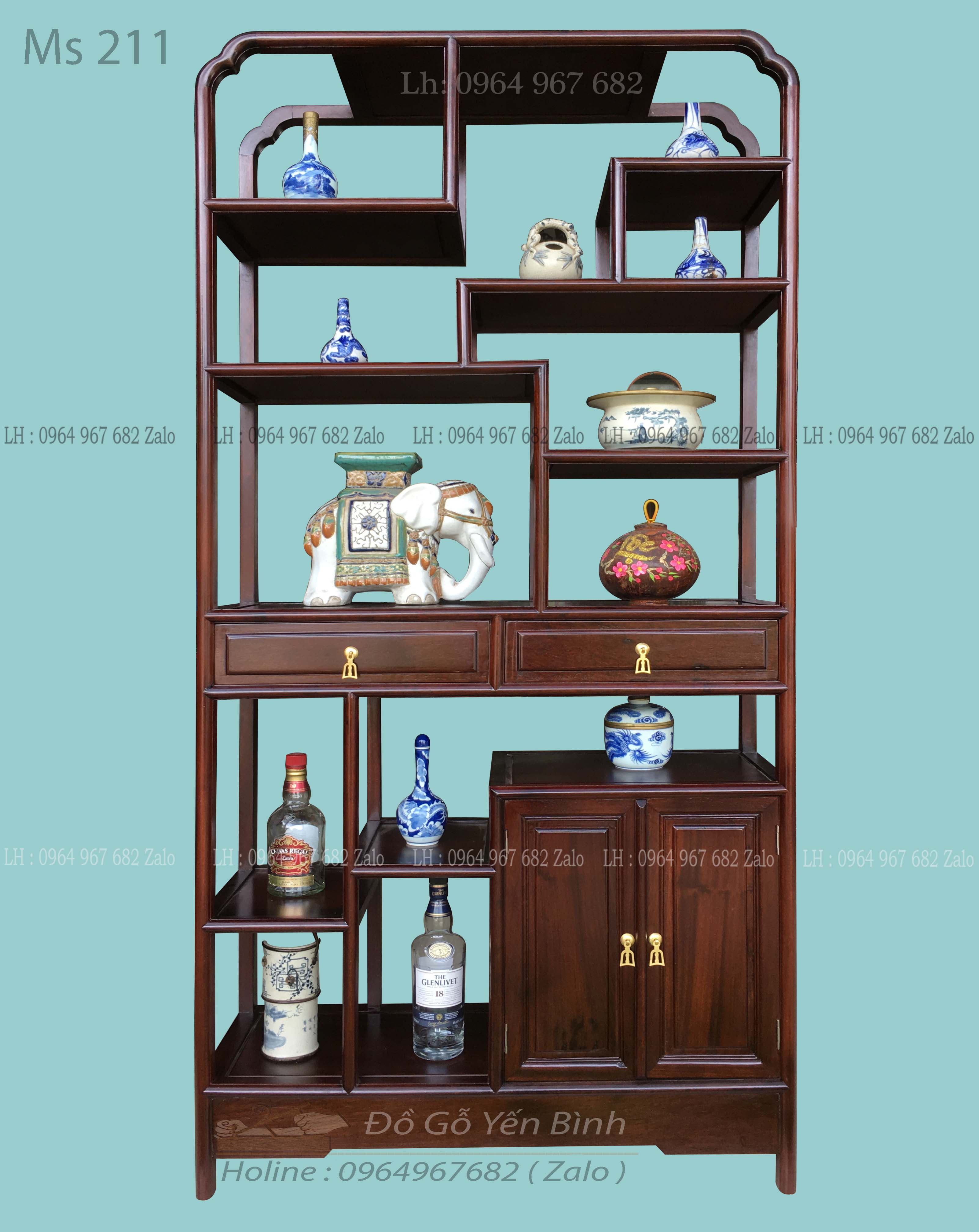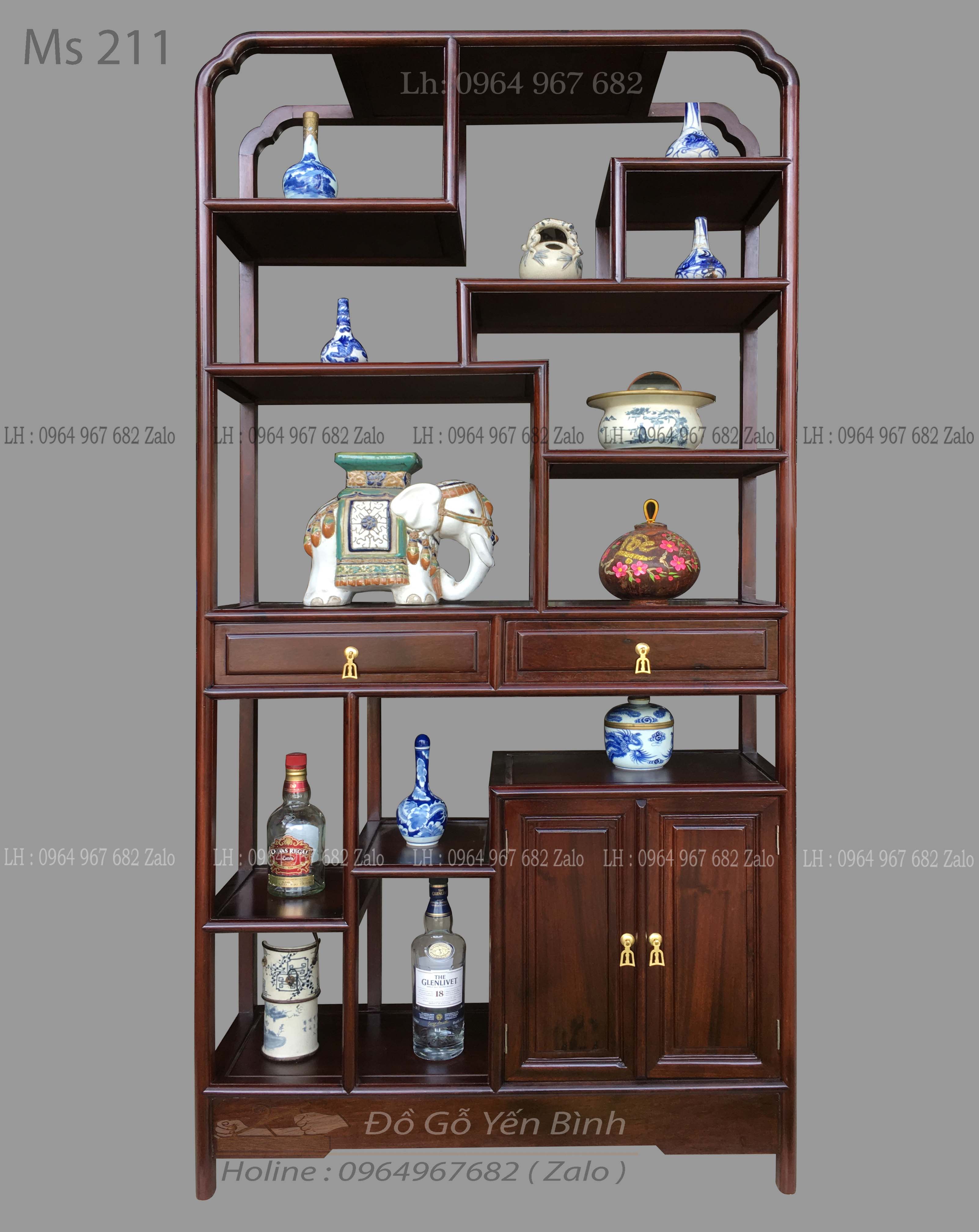 Tủ bày đồ trưng rượu Ms 211 Giúp chủ nhà phô ra những chai rượu quý hoặc đồ cổ ngoạn như bình lọ tượng gốm sứ tượng hoặc cây bonsai cũng để dễ dàng sắp xếp và sử dụng đến khi cần thiết.