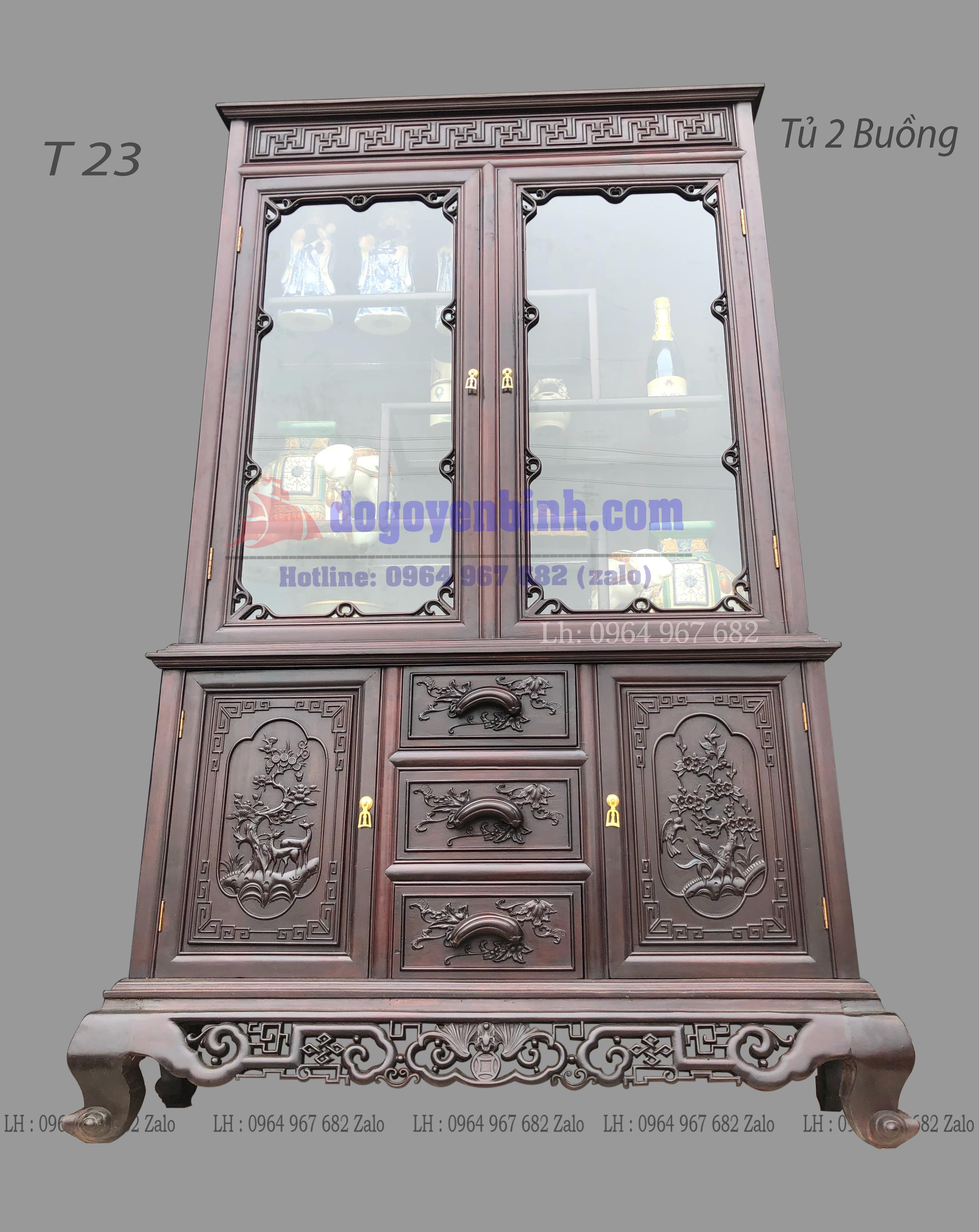 Tủ bày đồ 2 buồng - tủ trưng rượu đồ gốm sứ